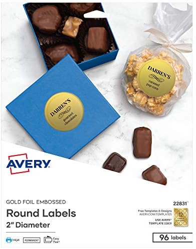 Amazon.com: gold avery labels Avery Printable Embossed Foil Round Labels, 2" Diameter, Gold, 96 Customizable Labels (22831) 383 $1524 ($0.16/Count)$20.28 Save more with Subscribe & Save Get it as soon as Mon, Sep 19 FREE Shipping on orders over $25 shipped by Amazon More Buying Choices $11.88 (21 new offers)