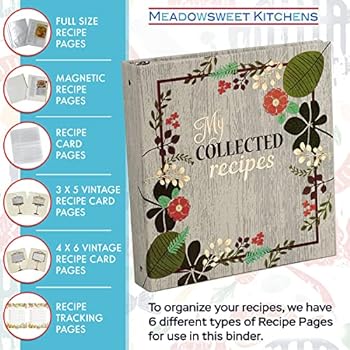 Meadowsweet Kitchens Fabric-Covered Recipe Binder with Dividers and Labels - Recipe Book Binder, for Recipe Cards, Full Size Recipes, Recipe ...